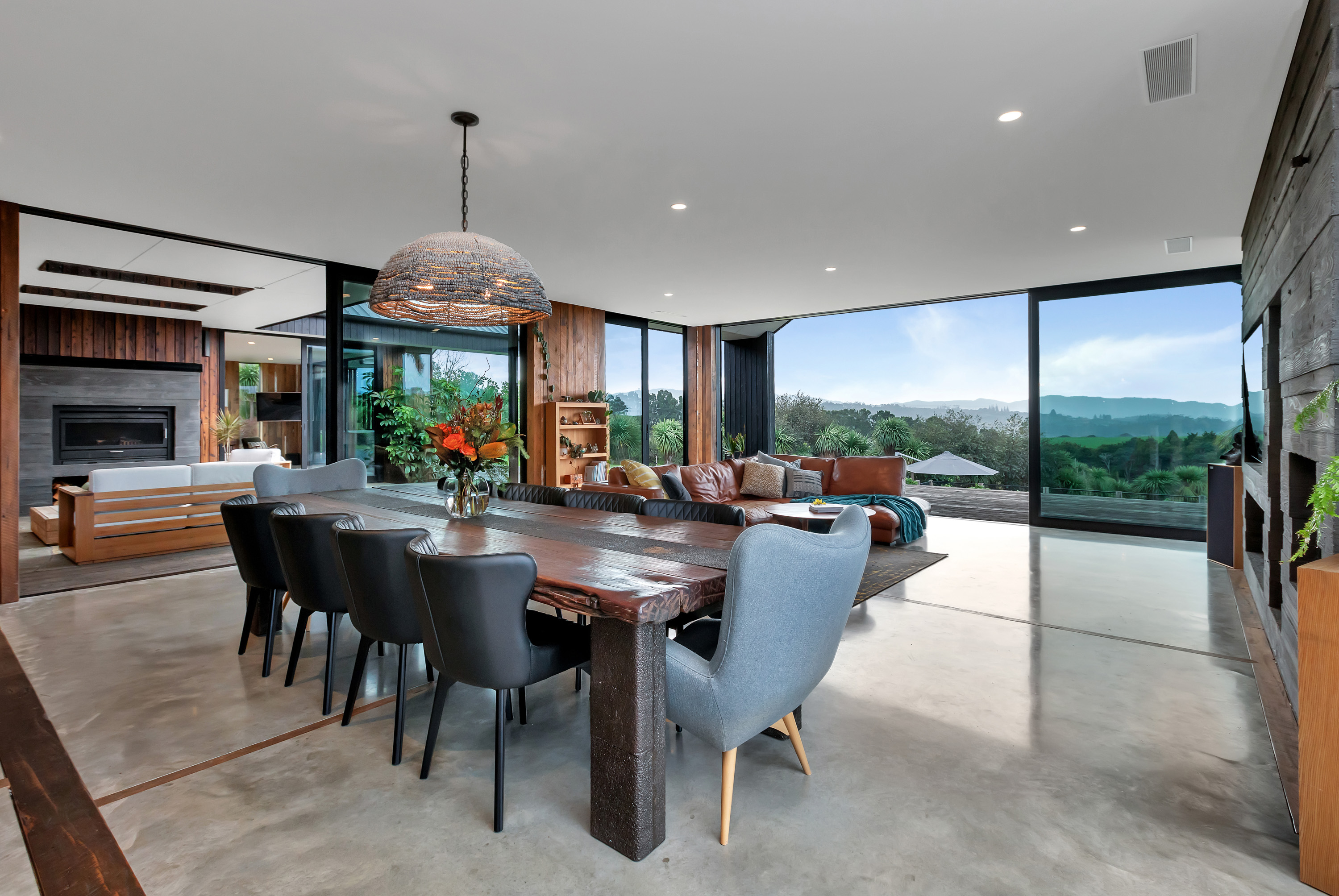 Located in a serene rural setting, Hilltop is a refined rustic family home by Smith Construction that blends new and upcycled materials for timeless charm. Featuring charred Japanese cedar cladding, recycled Rimu walls, and polished concrete floors with timber inlays, it offers seamless indoor-outdoor living with a pool, spa, gardens, and expansive spaces for tranquil, year-round enjoyment.